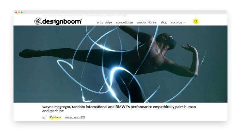 Designboom是全球最受欢迎的互联网视觉设计类的数字媒体,获得世界超过 350 万读者关注,汇集了不同专业的用户和年轻创意者,通过发布建筑、设计、艺术、摄影以及最新新闻和热议话题,20 年不变的宗旨是发掘最有趣的创意,同时也是设计行业资讯大佬,拥有超过 50000 篇具备超过价值的设计信息、访谈、展览、以及书籍评论等等。