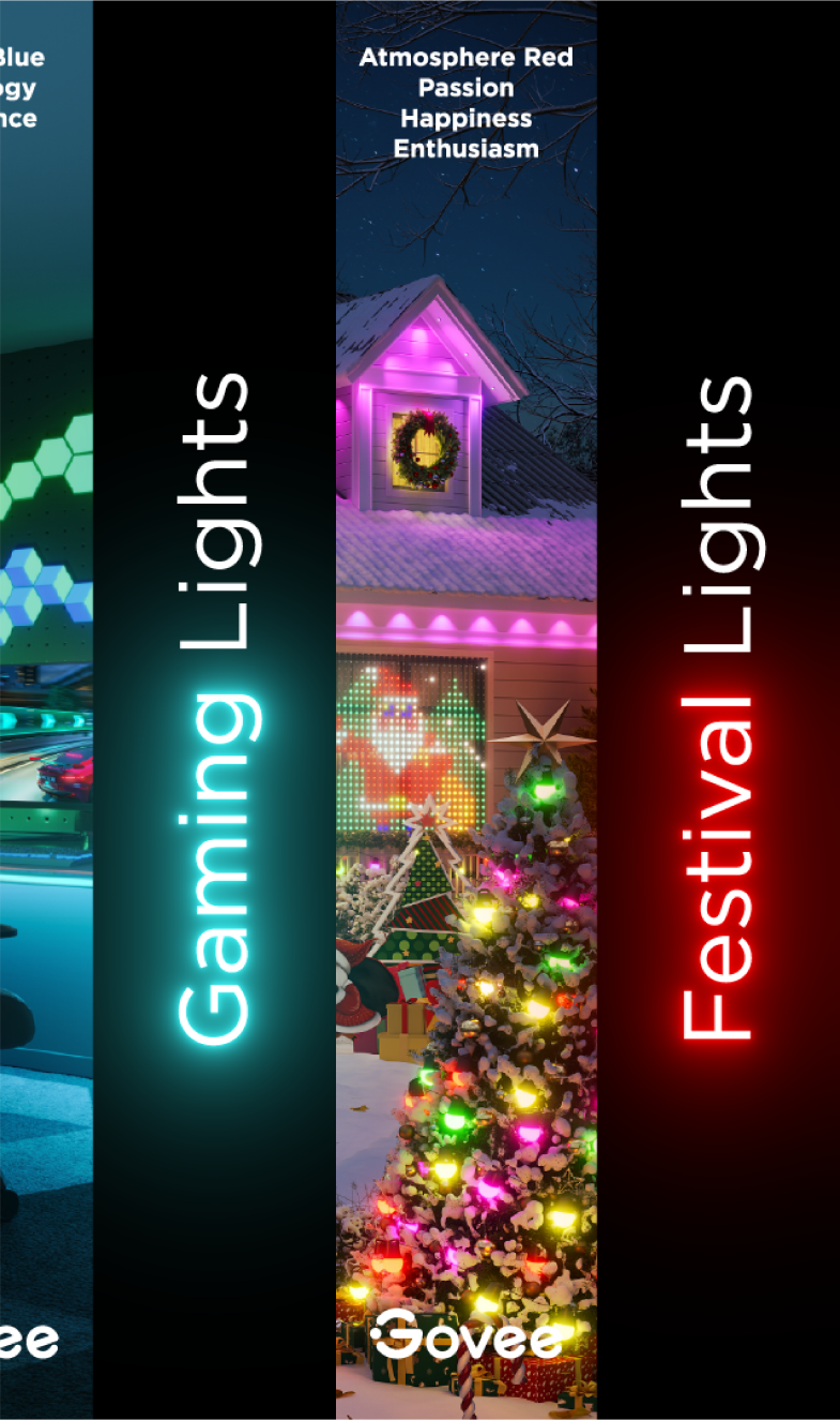①认知升级——将”光语言”转化为视觉超级符号,将Govee与「Smart Light」品类关联,最终达到「关联消费者心智」的认知传播目的。将竞争维度从技术规格(流明/色域)提升至品牌情感价值,在竞争市场中形成差异化叙事。同时,建立统一全渠道视觉体系,以简练的视觉语言提高信息传递效率,让用户一眼识别产品功能,提升决策效率。