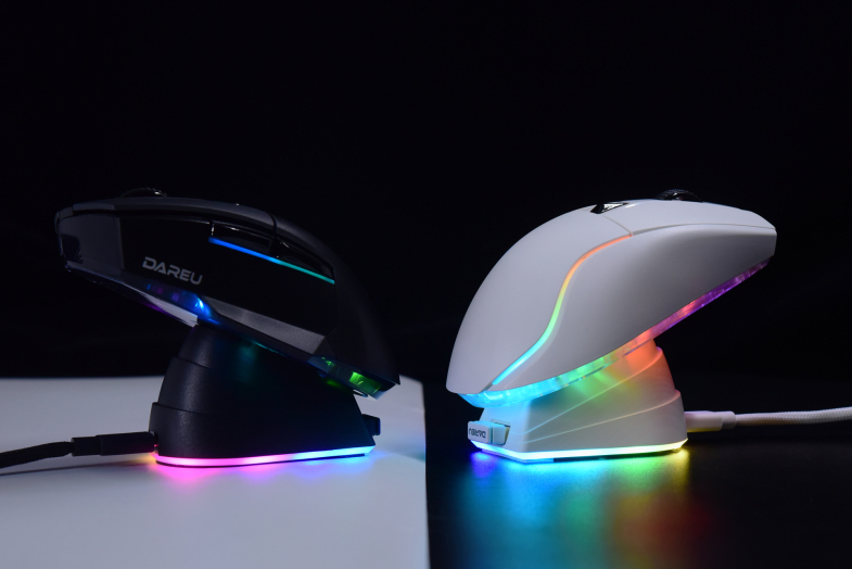 达尔优A955三模游戏鼠标是达尔优第三款采用座充+线充方案的游戏鼠标,而且三款游戏鼠标的座充都通用。