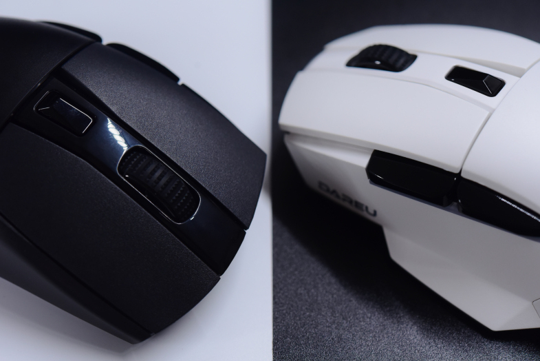 在很久以前就在想,鼠标材质如果用PBT不就可以避免了打油脱皮各种问题了吗。这次达尔优A955算是满足了我多年来的想法。PBT左右按键的触感比较温和,加上表面的晒纹处理,摸起来有细腻的磨砂质感,后盖虽然是PC材质,但也用了和左右按键的晒纹表面处理,整体手感满分。