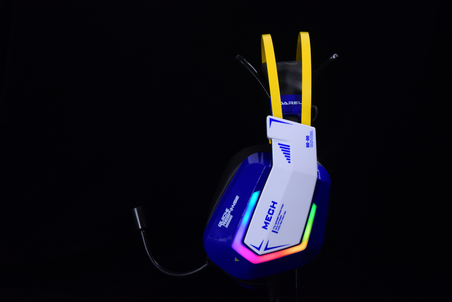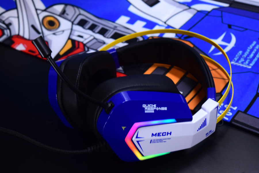 RGB灯光:外耳壳部分加入了RGB灯位,搭配蓝白黄机甲风看起来还是挺炫的。
