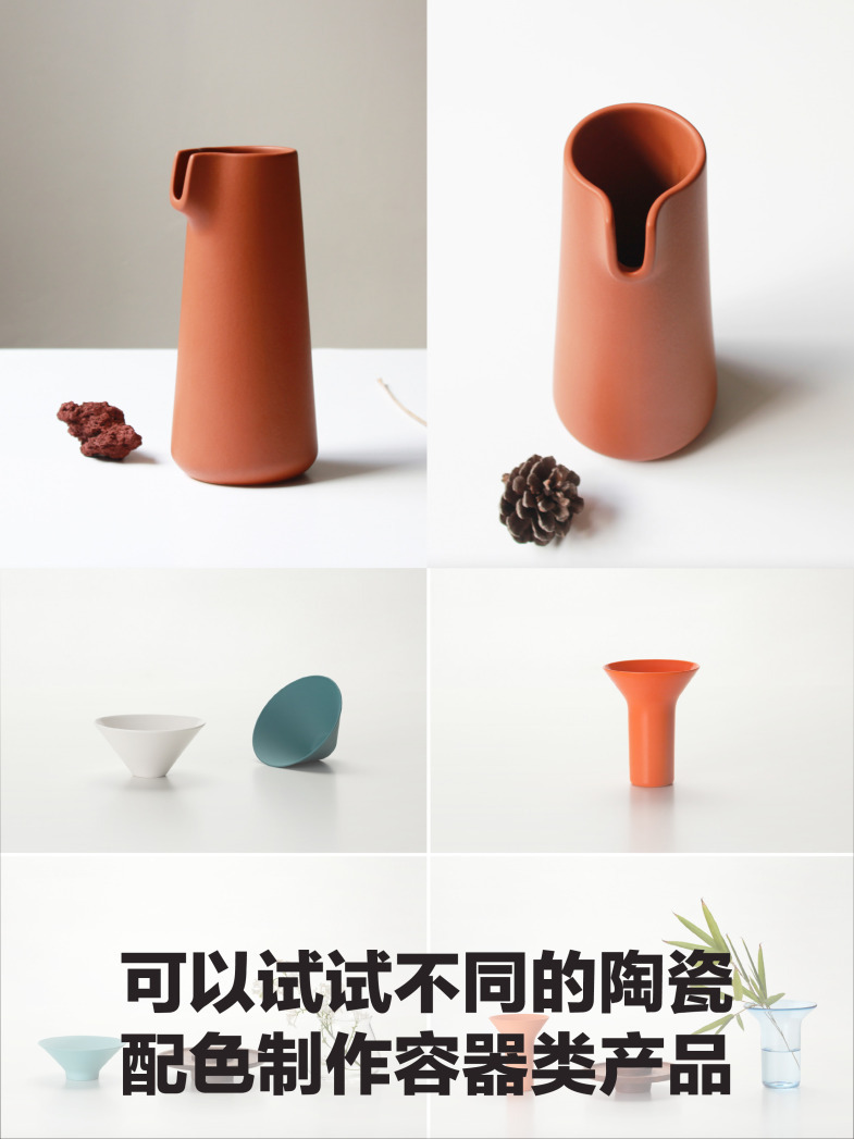 陶瓷因为其材料的耐热性,耐磨和耐腐蚀的特性被大量使用制作成容器,设计师使用陶瓷主要是因为陶瓷的颜色多变,性能稳定可以展现出更多的效果,让设计师有更多的创意空间表达自己的设计理念。