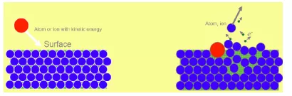 氩离子撞击靶材:被电子撞出来的氩离子带正电荷,靶材是高电压负极,所以在强电场的作用下,氩离子快速轰击靶材表面,撞击能量大于靶材金属原子之间的结合能时,靶材金属原子被撞击出来,成为高速直线运动的气态原子。这个过程就是溅射。