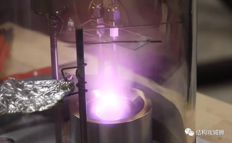 等离子体形成:当电子、氩离子达到一定浓度了,并且与PVD罐体内的氩分子形成动态平衡(电离速度=符合速度)时,就形成了氩气等离子体。这个时候,我们就会在PVD罐上的观察口里观察到均匀的淡紫色辉光,如下图: