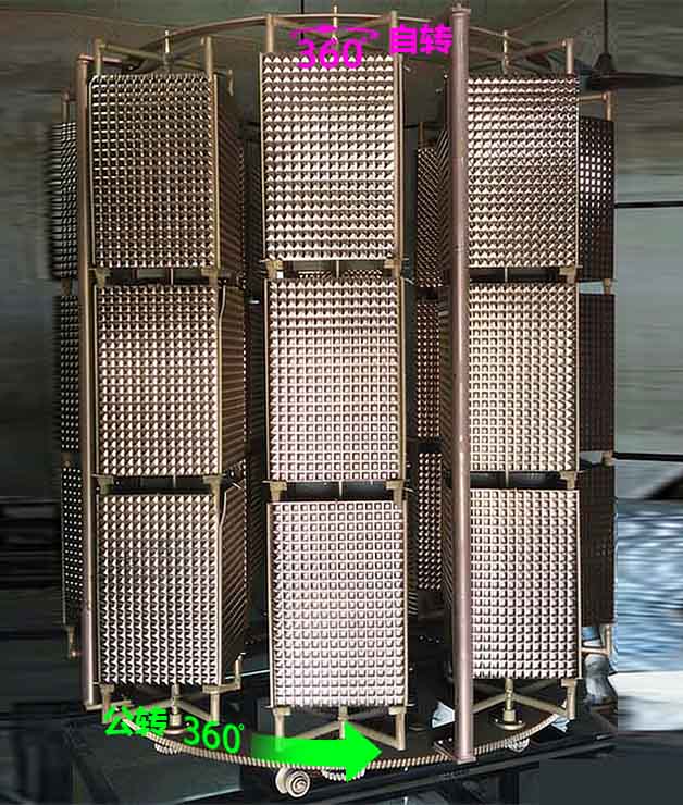 基材安装方式:在生产中,为了让沉积更均匀一些,待镀件都会挂在一个能旋转的架子上,架子自转,底座公转,如下图: