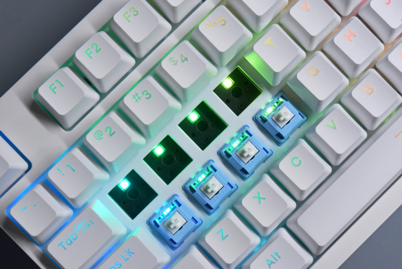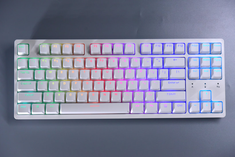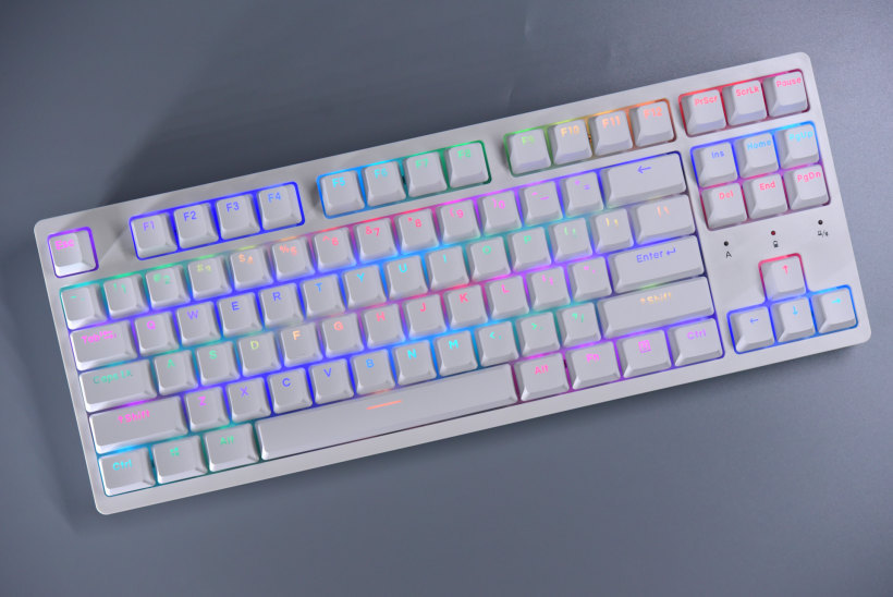 这应该是达尔优A系列机械键盘首次有RGB背光了,搭配上面的透光键帽和磁吸上盖,没有漏光情况,直接上RGB,这波完美解决灯光需求了。