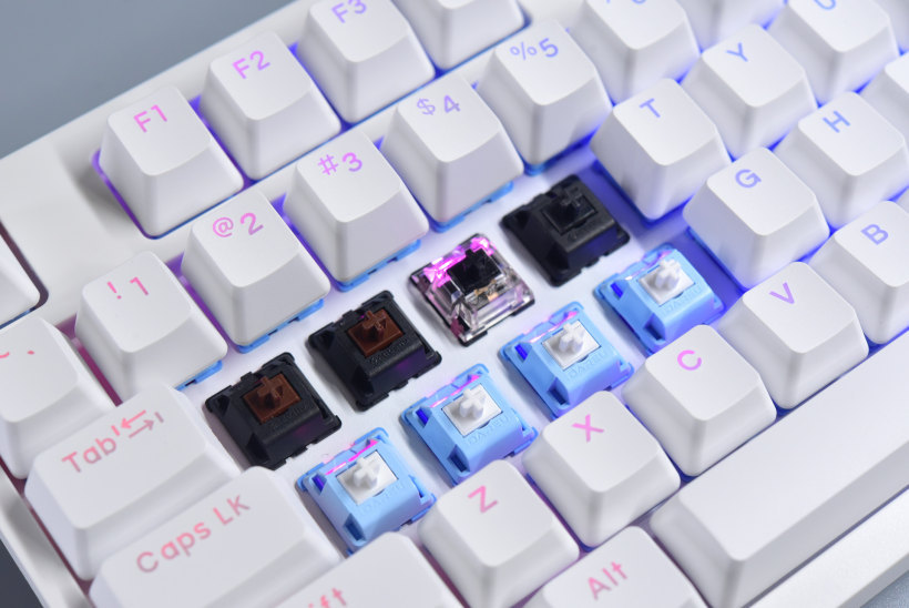 轴体热插拔,这直接想要啥轴自己装就行,轴体比键盘便宜多了,DIY非常有用的设计。