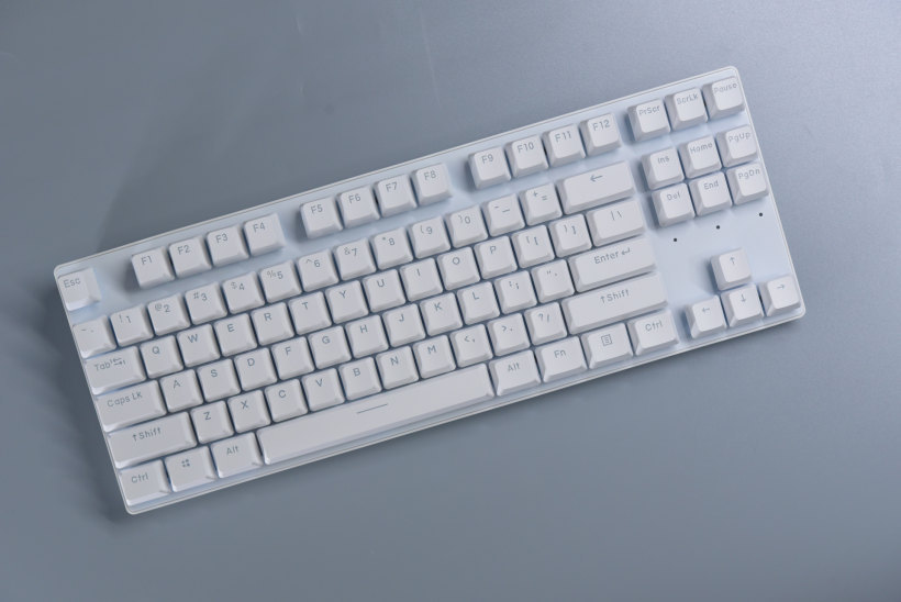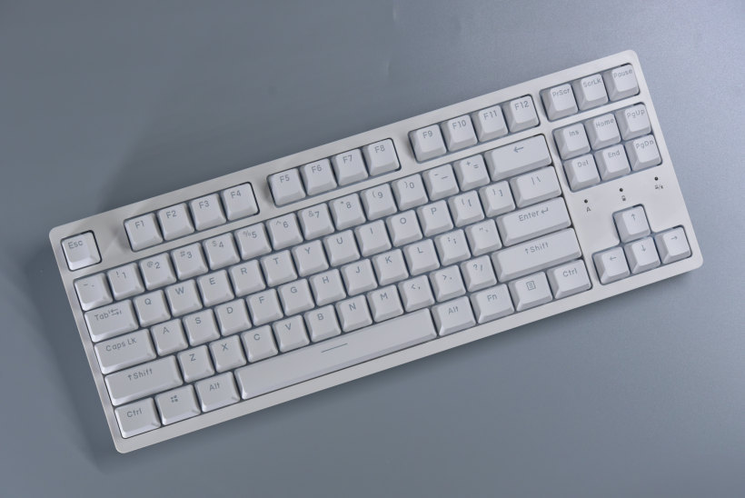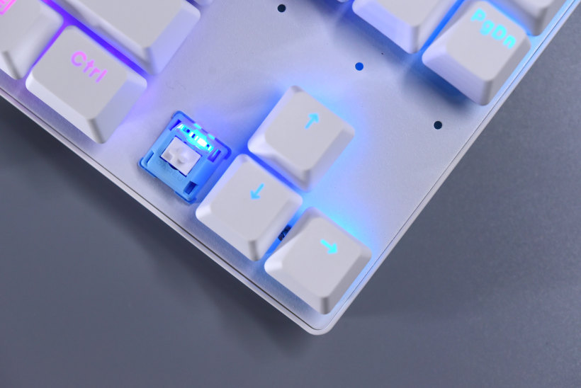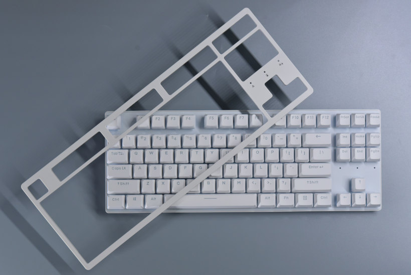 纯色的机械键盘,即使拆掉了上盖也是不错的样子。