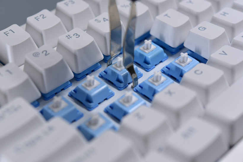 接下来就是拆开键盘逐一了解一下了,这个拔键器派上用场了。