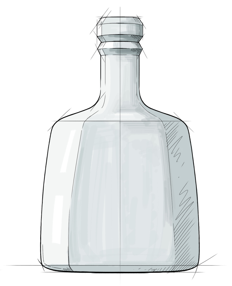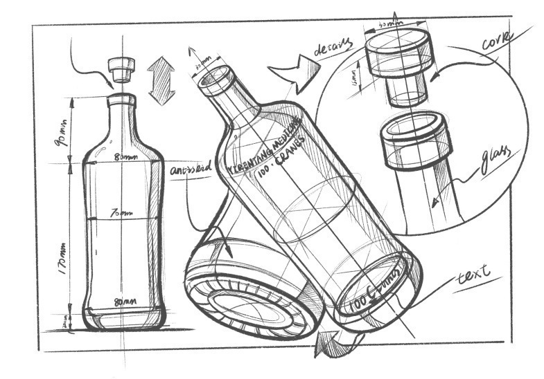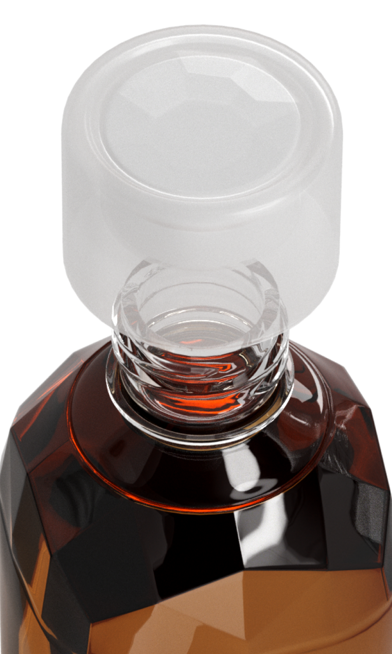我们更喜欢做一些有趣的事情,直接把茅台瓶放大,并融入威士忌酒瓶的特征。当然要重塑每一个细节,脖颈部分过度更加硬朗鲜明,瓶身雕刻手写体名称表达手工感。