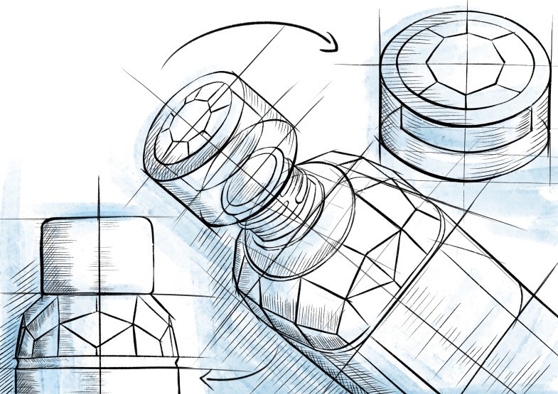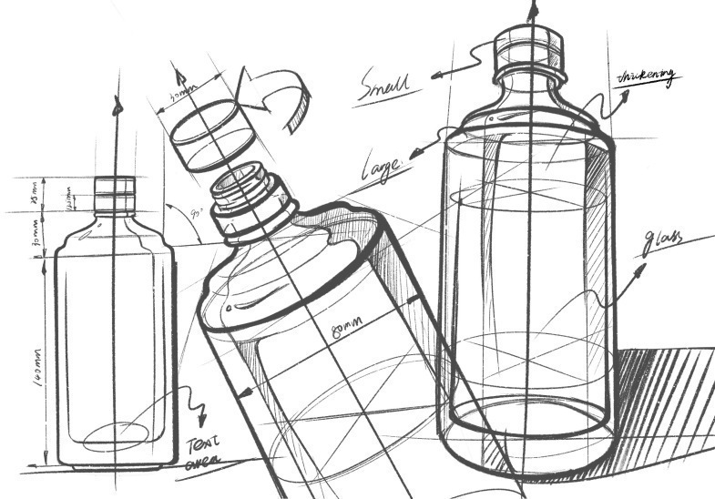 从圆到圆的瓶腰过渡是容易的,从方到圆的不规则图形过渡却有很大的难度,我们在产品造型上耗时30天,终于为新派凉茶打造出晶莹的「碎冰」造型。