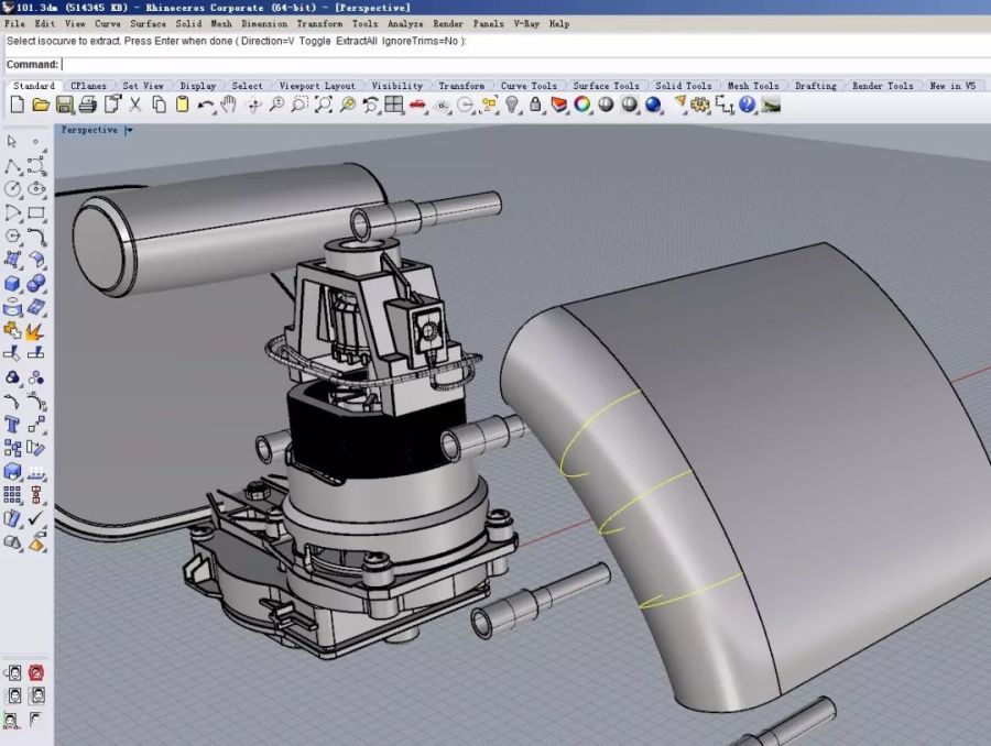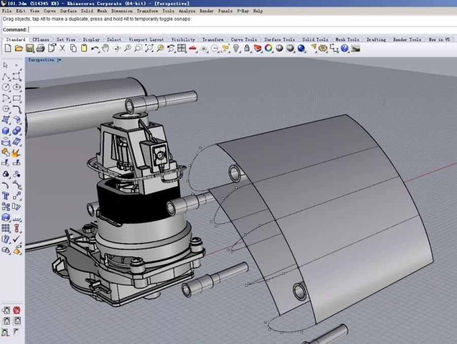 同样,为了参考尺寸,我们先按照原有产品,把它们建模做出来,放在Rhino里面。