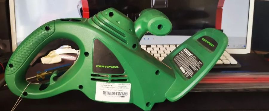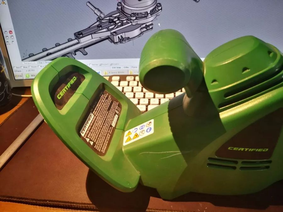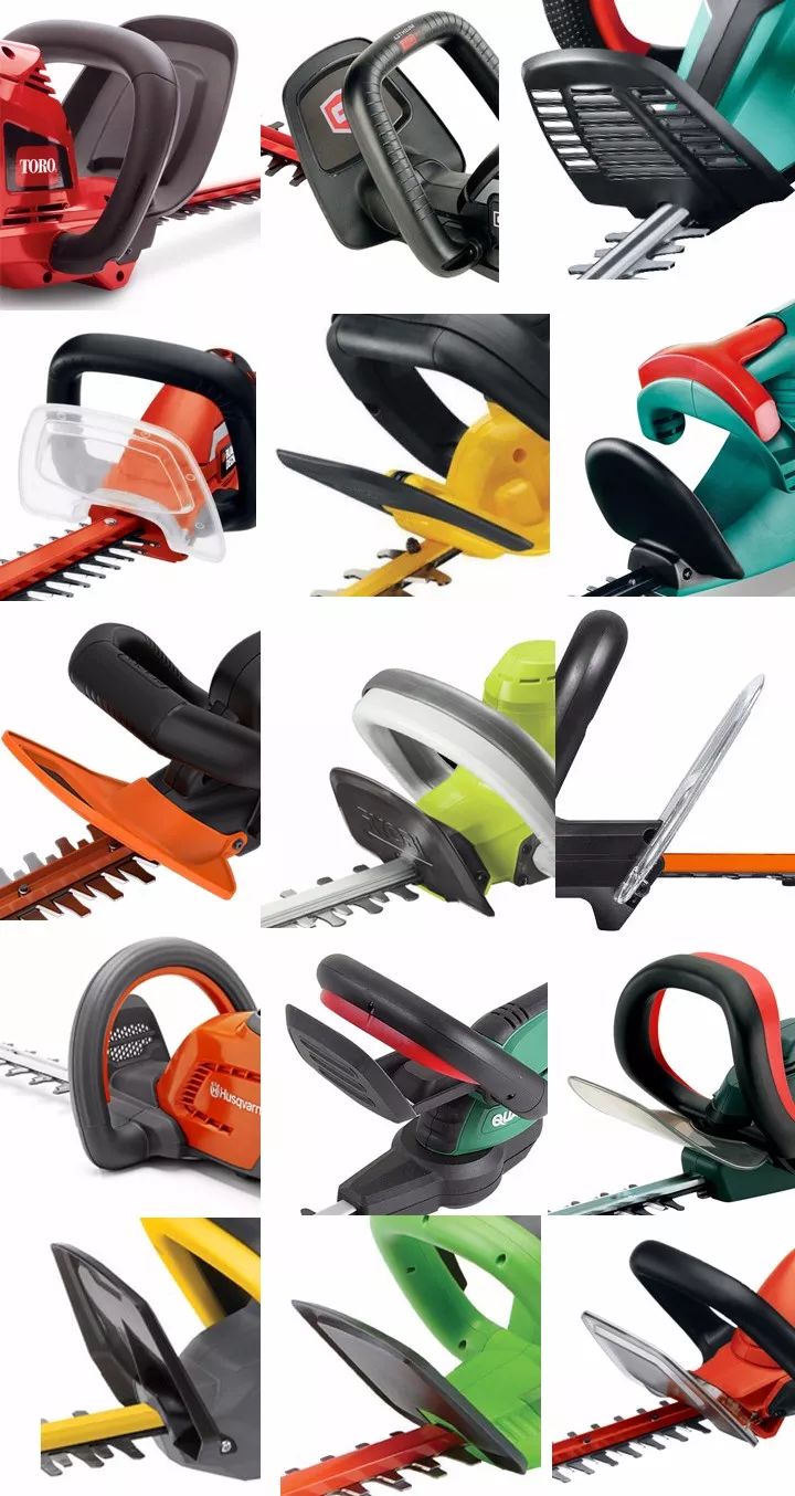 绿篱机是一款双手操作的产品。所以它有两个把手。用起来就像是提着一把重机枪。