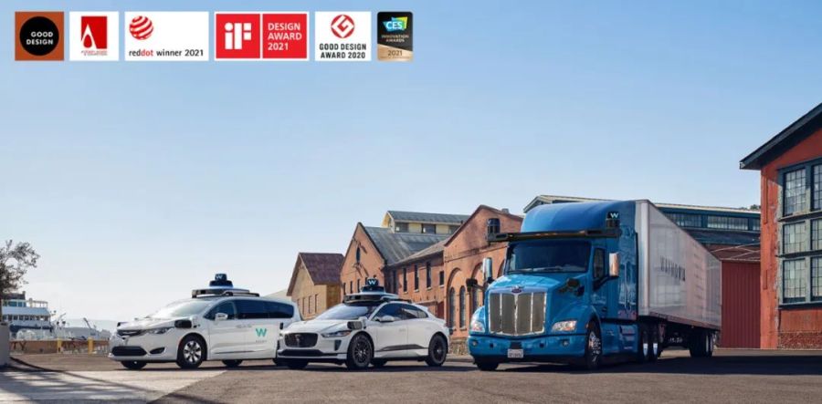 下:装载第五代Waymo Driver的卡车+网约车包揽当年所有设计奖项(图源:Waymo)