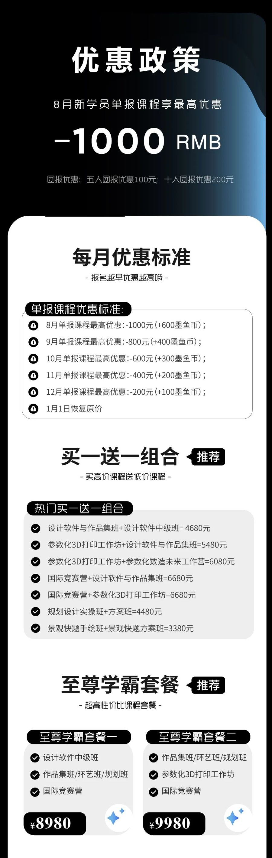 大一的同学可以考虑连报设计软件中级班+设计软件与作品集班;