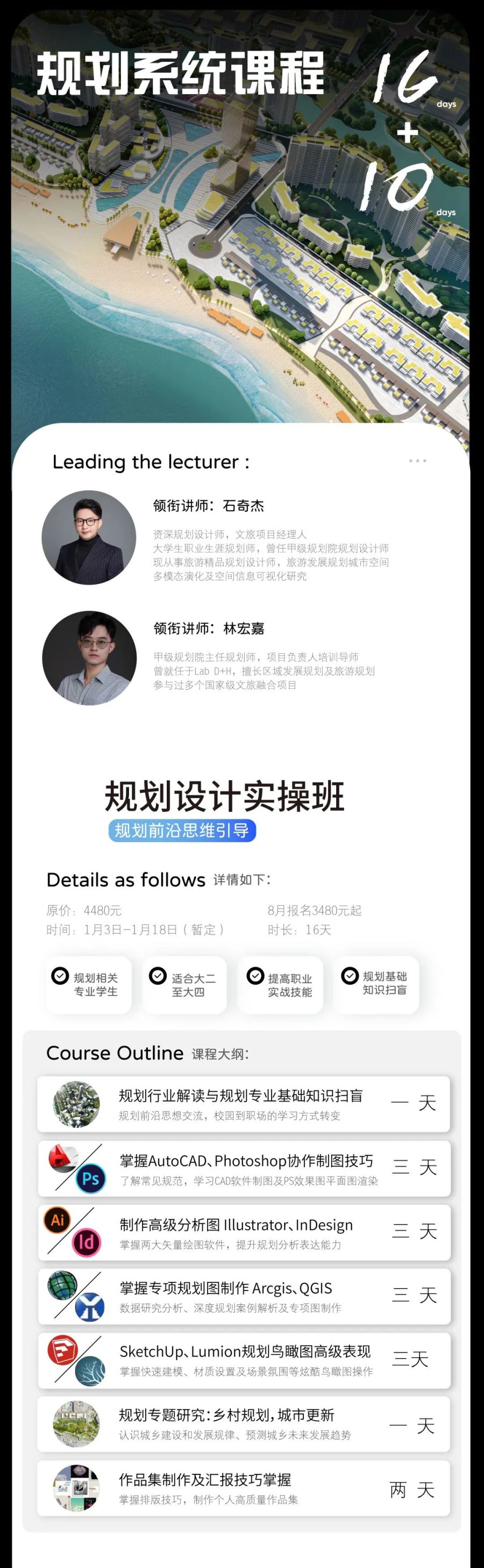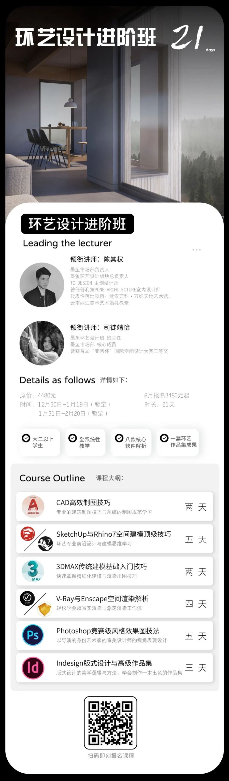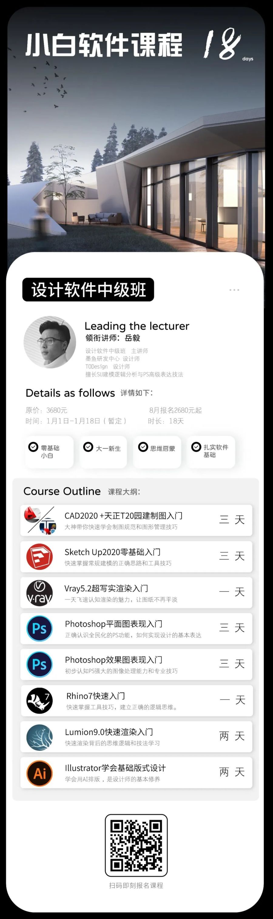 大二的同学可以考虑报设计软件与作品集班或规划设计实操班;