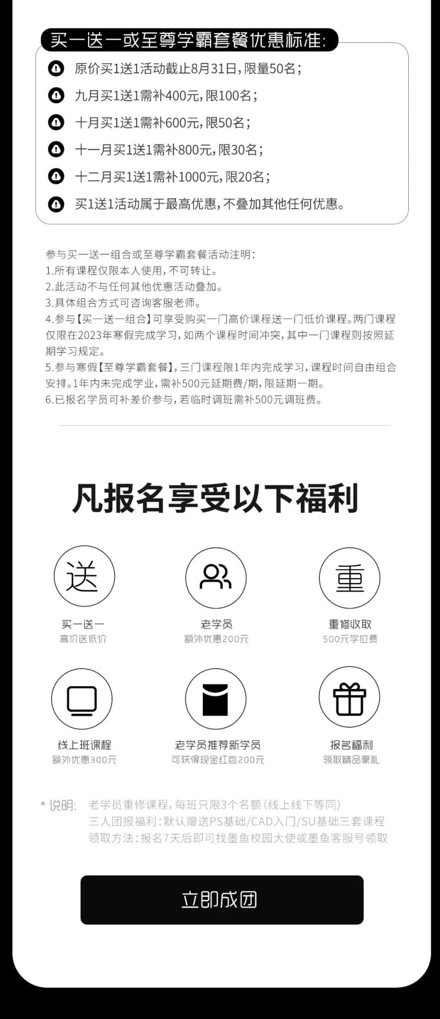 1. 墨鱼承诺报名后7天内无理由退款,超过7天不予退款;