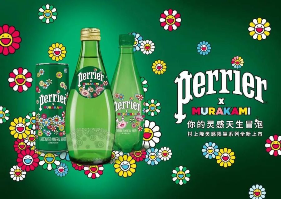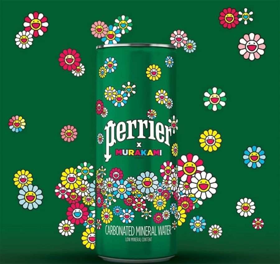 2020年9月,Perrier再次将日本艺术家村上隆(Takashi Murakami)明亮多彩的波普艺术美学带到了Perrier包装设计中。