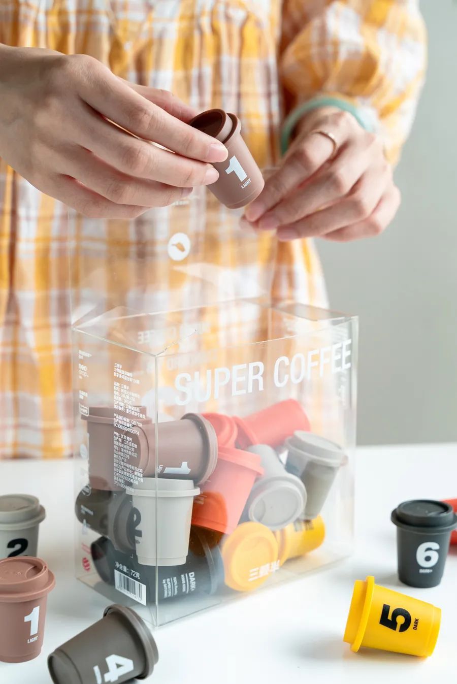 三顿半还根据产品烘焙程度的深浅,搭配不同数字和颜色:从0~7,数字越大代表咖啡烘焙程度越高,也让用户一目了然。