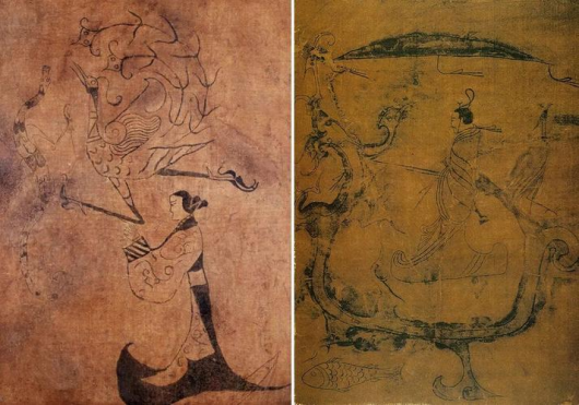 湖南省博物馆的战国帛画《人物御龙图》(图片来自网络,如有侵权,告知替换)