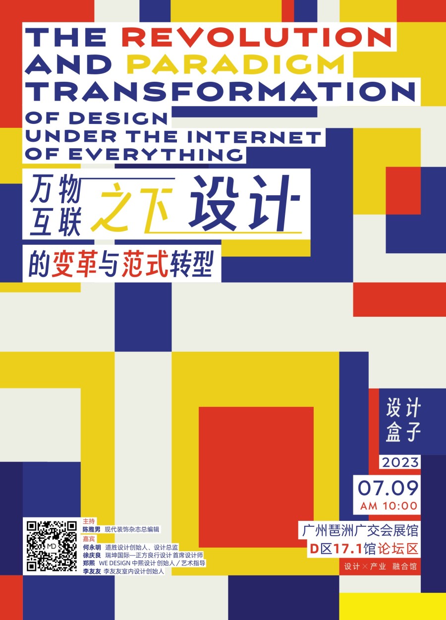 由现代装饰杂志社策划的「万物互联之下,设计的变革与范式转型」论坛,将于7月9日上午举办!届时,现代装饰杂志社总编辑陈雅男将携手道胜设计创始人、设计总监何永明;瑞坤国际—正方良行设计首席设计师徐庆良;WE DESIGN 中熙设计创始人/艺术指导郑熙 ;李友友室内设计创始人李友友,围绕智能、消费趋势等新变,从设计的本质出发,重新定义设计,激活产业发展,共探设计驱动产业创新的多样可能。