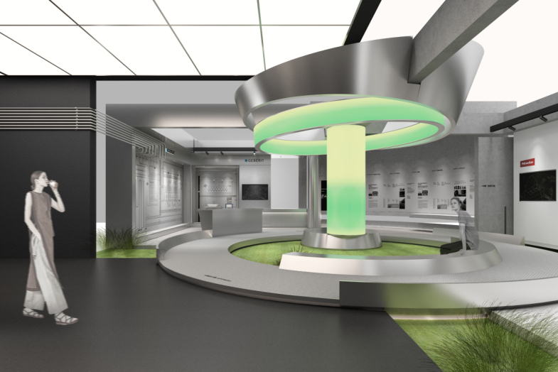 作为瑞士吉博力、美国怡口净水、raumplus、德国美诺的四个品牌联合展厅。设计以「品牌独立,功能融合」为概念,基于四个品牌的独特性,空间规划上为四个不同的品牌建立了独立的展陈窗口。空间中心以圆环形处理,以此来隐喻品牌的串联,同时表达了各品牌均为360度全方位的系统化高品质家居产品代表。