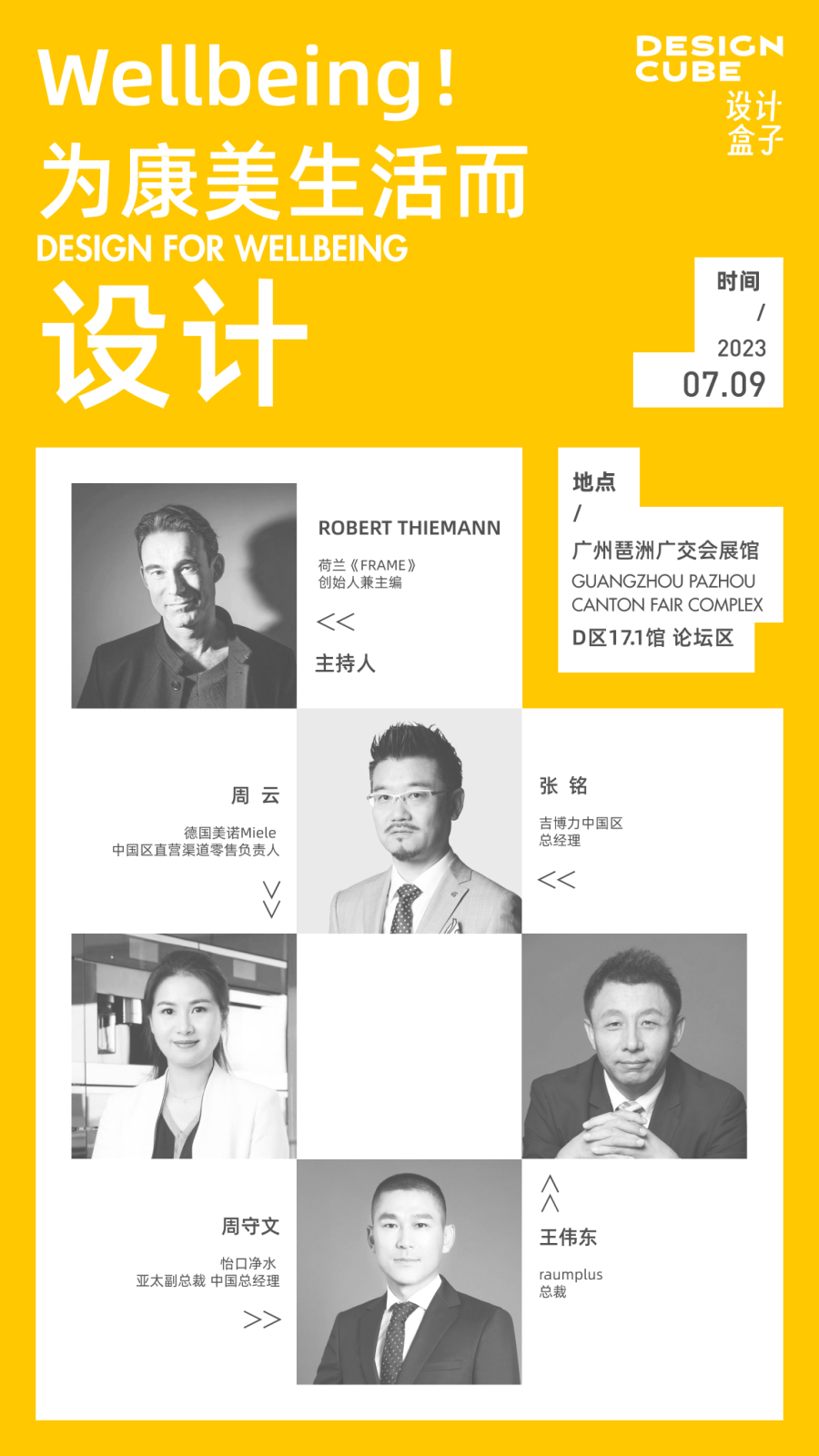 Wellbeing是一个很奇妙的词,它不仅仅指「健康」,还包括一种良好的精神状态。它还有「幸福」的含义,并且代表着一种正发生的生存状态「美好·在当下」。7月9日的论坛中,FRAME主编Robert Thiemann 将担任主持,与瑞士吉博力 GEBERIT,美国怡口净水 Ecowater Systems,德国美诺 Miele和raumplus四家顶级材料品牌,以「为康美生活而设计」为主题,探讨「Wellbeing幸福」,倡导对细节的关注,构建可持续幸福感的生活。