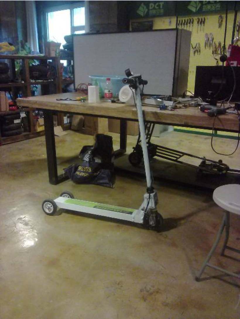 《应用了曲轴式转向内倾机构的电动滑板车》