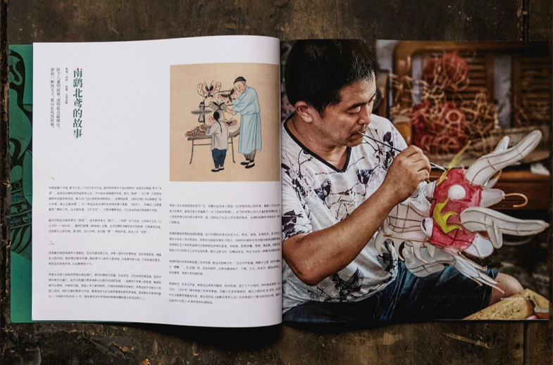 另一款“合家欢”的设计,是承载了几代人回忆的风筝玩具。从2019年开始,我们成立的「中国的风筝」项目组,对全国各地的风筝、手艺人,进行了调研。结合国画、木版水印等创作手法,设计出了颇有东方之美的「清风放月」礼盒。从风筝纸、骨架、夹子,到胶水、绑绳、绣花针......我们对风筝的制作工艺进行一一解构,将其制成材料包。