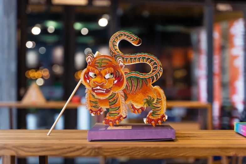 按照办年货、贴春联、团圆饭、压岁钱、逛庙会、赏花灯等新年习俗,设计了一系列创意十足的过年潮品。礼盒形象取自河北武强年画《猛虎下山》,这只威武又神气的大老虎,不仅送人喜庆,取出产品后,还能变成喵咪的家,既环保又好玩。