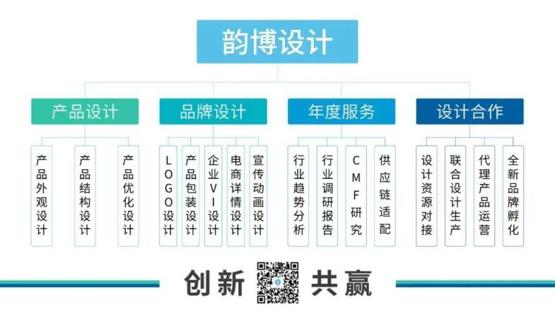 韵博工业设计,始创于2008年,一直致力于产品设计和品牌策划服务,在2020年总部荣获深圳市十佳工业设计企业荣誉称号。韵博始终坚持“创新 共赢”的企业理念,为客户提供包括:产品策划、市场调研、设计咨询、外观设计、结构设计、手板模型制作、模具设计、包装设计、产品推广策略等产品开发全流程服务。