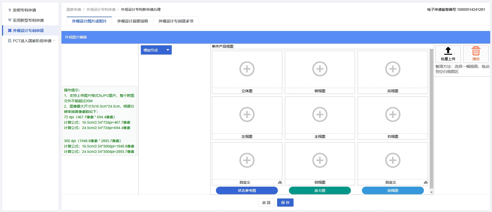 外观专利上传后台是这样的,你弄了半天,到了代理那边可能还是截图