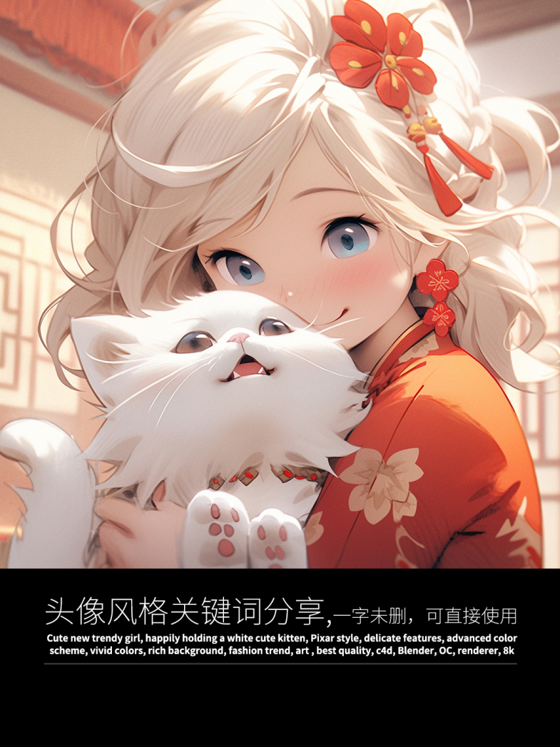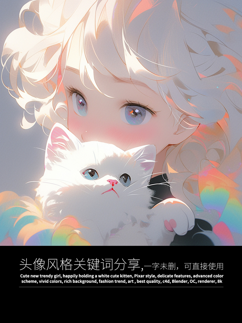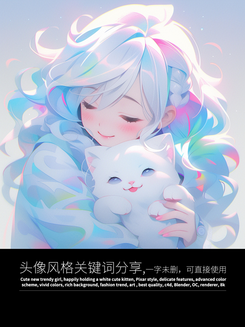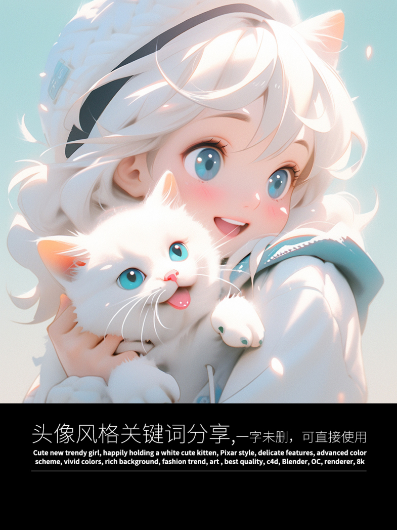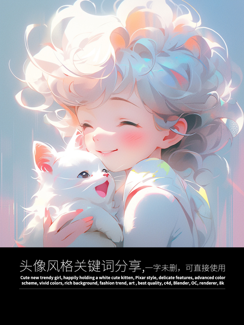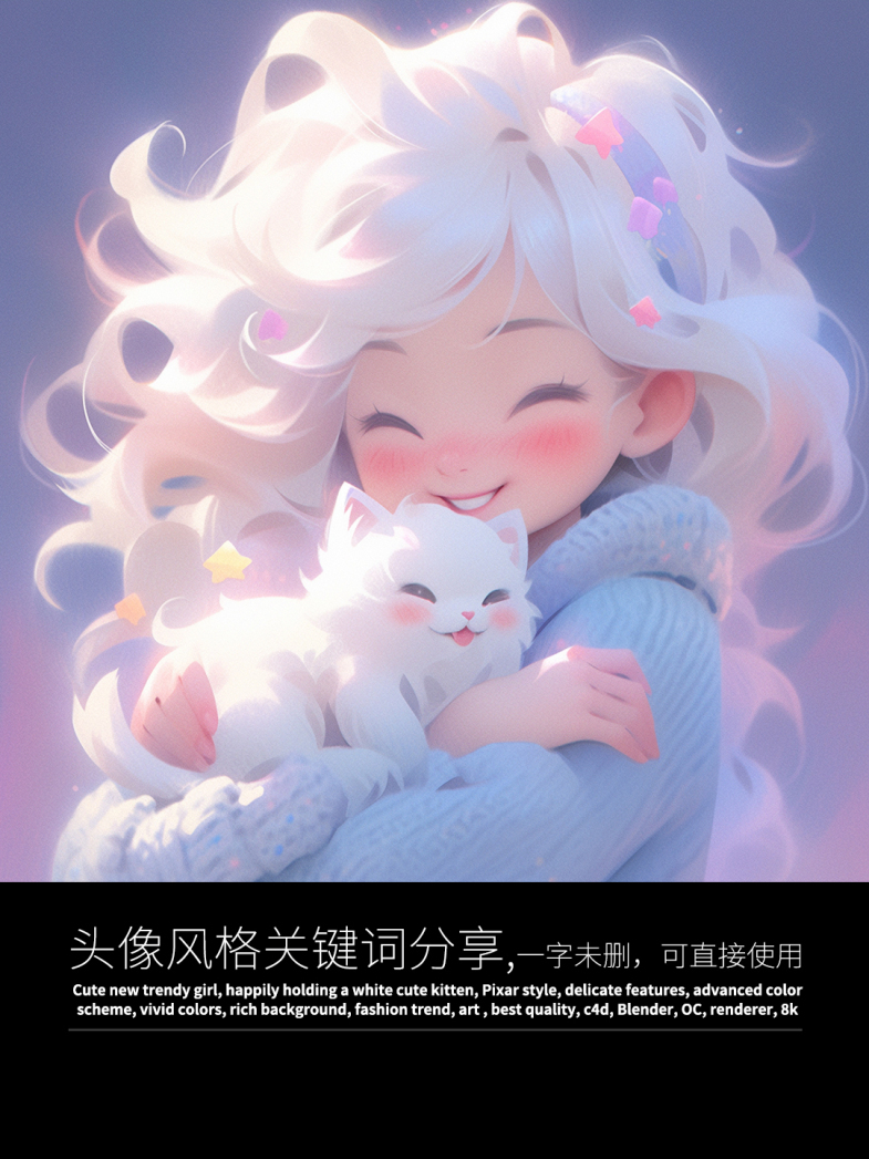 这次生成了一组超可爱的头像,图片和关键词都与大家分享