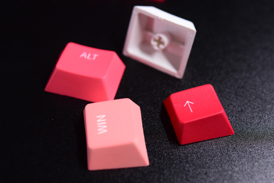 这套键帽就4个色组成,不透光就非常可惜了,毕竟这次的烈焰红轴的卖点就是轴中奥迪,亮瞎狗眼系列。