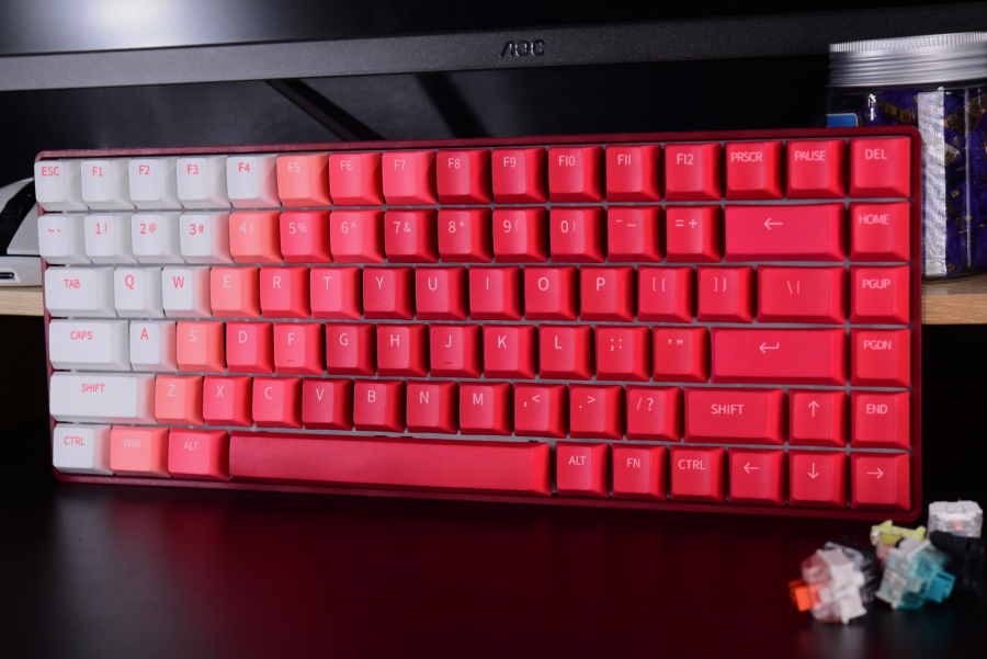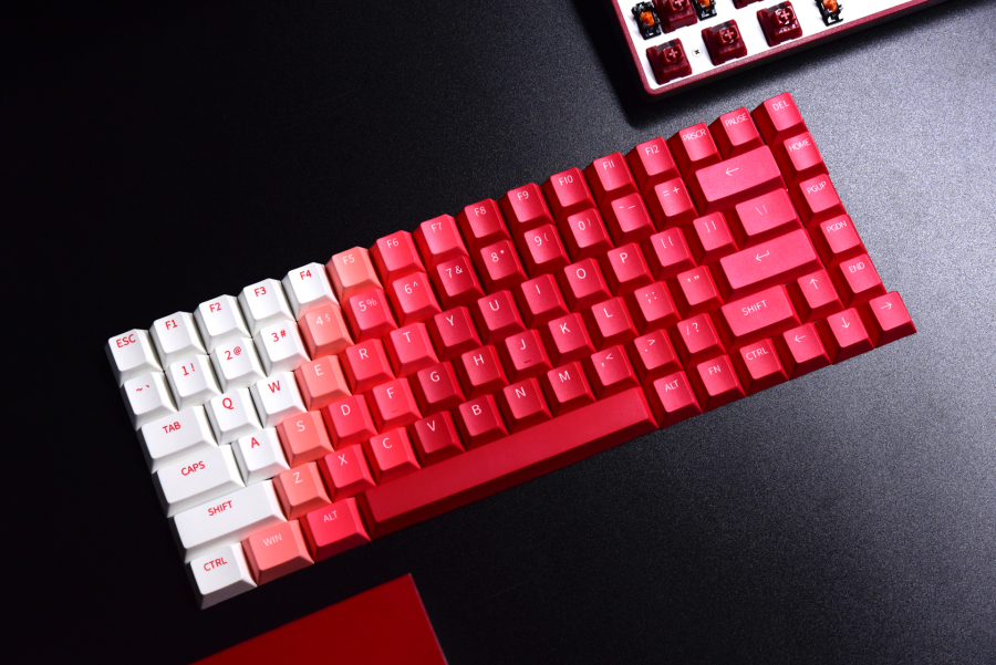 这次的外观不仅仅是键帽,也不是A87那种换上盖,直接连底座都给你整了个渐变处理,也许这就是烈焰红比其他两个同键位版本贵的原因吧。