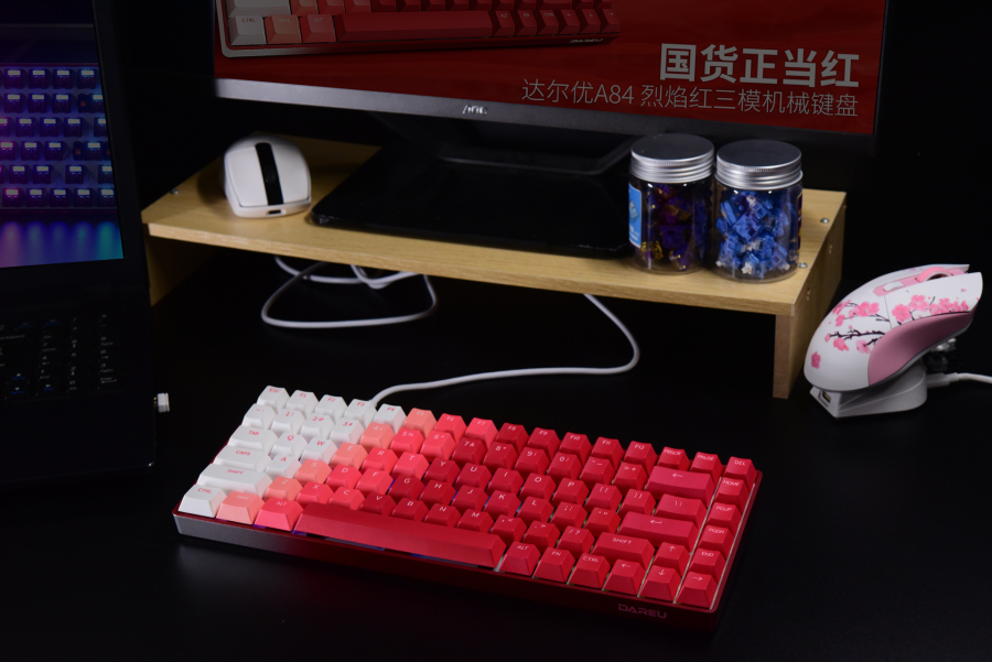 从上一年的鼠标轻量化潮流,到今年的热插拔轴机械键盘风向,达尔优这个外设品牌就一直没有停止过。不过今年的达尔优可以说做三模热插拔上瘾了,从刚开始的87key单模热插拔,到后面各种不同键位三模版本的热插拔,一直在更新(但就是没有单独的配件出售),今天就让我们来康康近期他们推出很火爆的“理财”产品,达尔优A84烈焰红机械键盘。