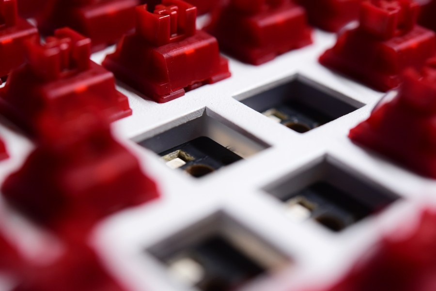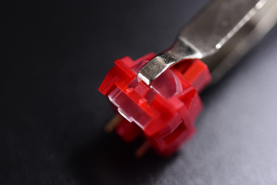 这个轴的轴芯和金粉的外观一样,都是有一个防尘壁结构,下压过程手感稳定,灯光位置换成了导光柱,导光柱直接近距离接触贴片灯,灯光效果通过导光柱内部折射光感更强。