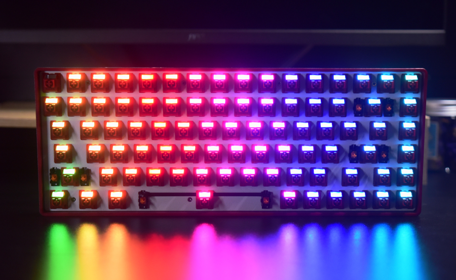 这灯光可以说无死角亮瞎了,搭配这个RGB,炫到了。因为键帽不透光,还是把键帽拔了感受哦这真·光。