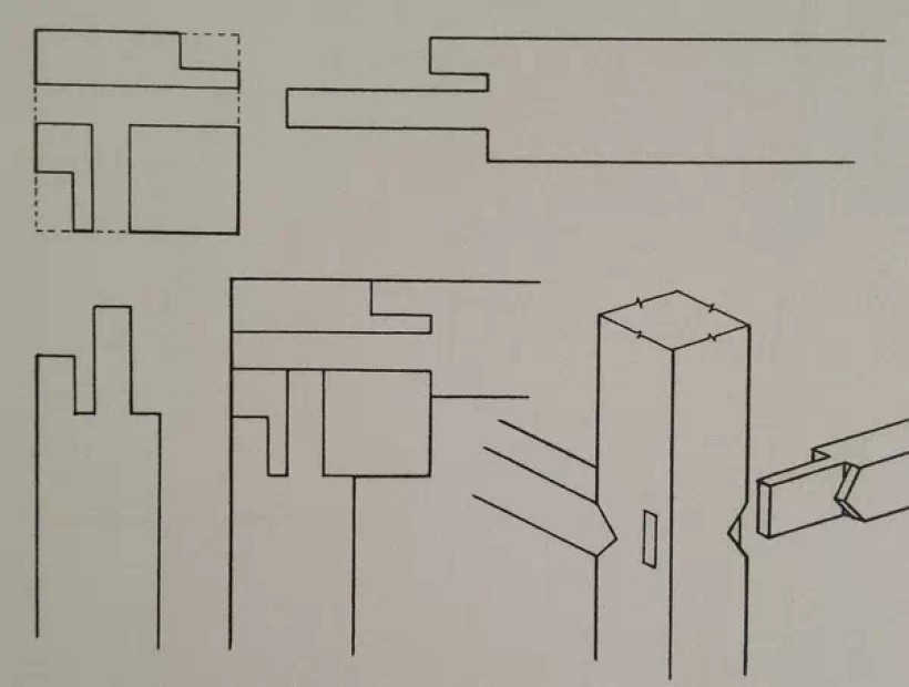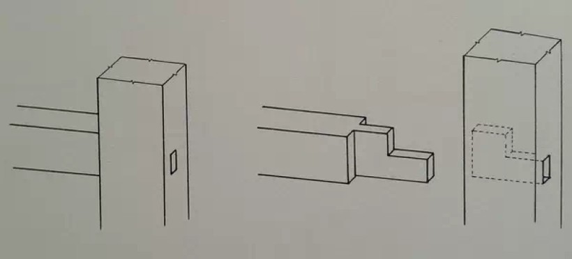 方材丁字形接合(榫卯大进小出)