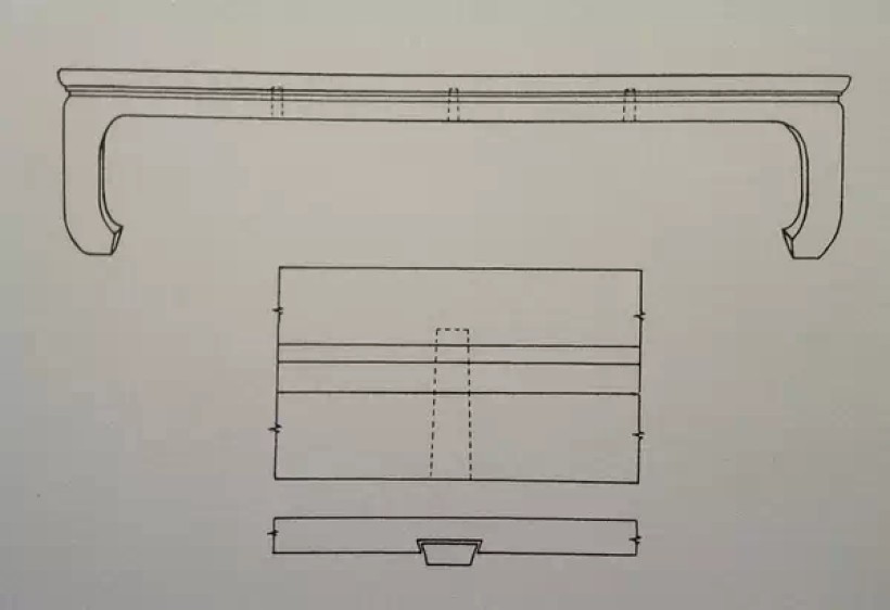 夹头榫结构(腿足上端开口嵌夹牙条,打槽装牙头)
