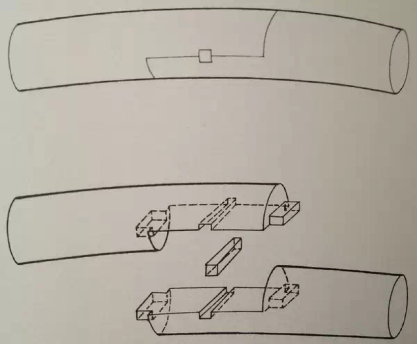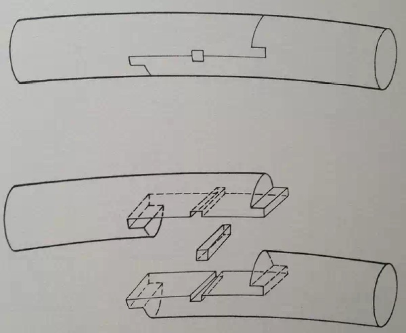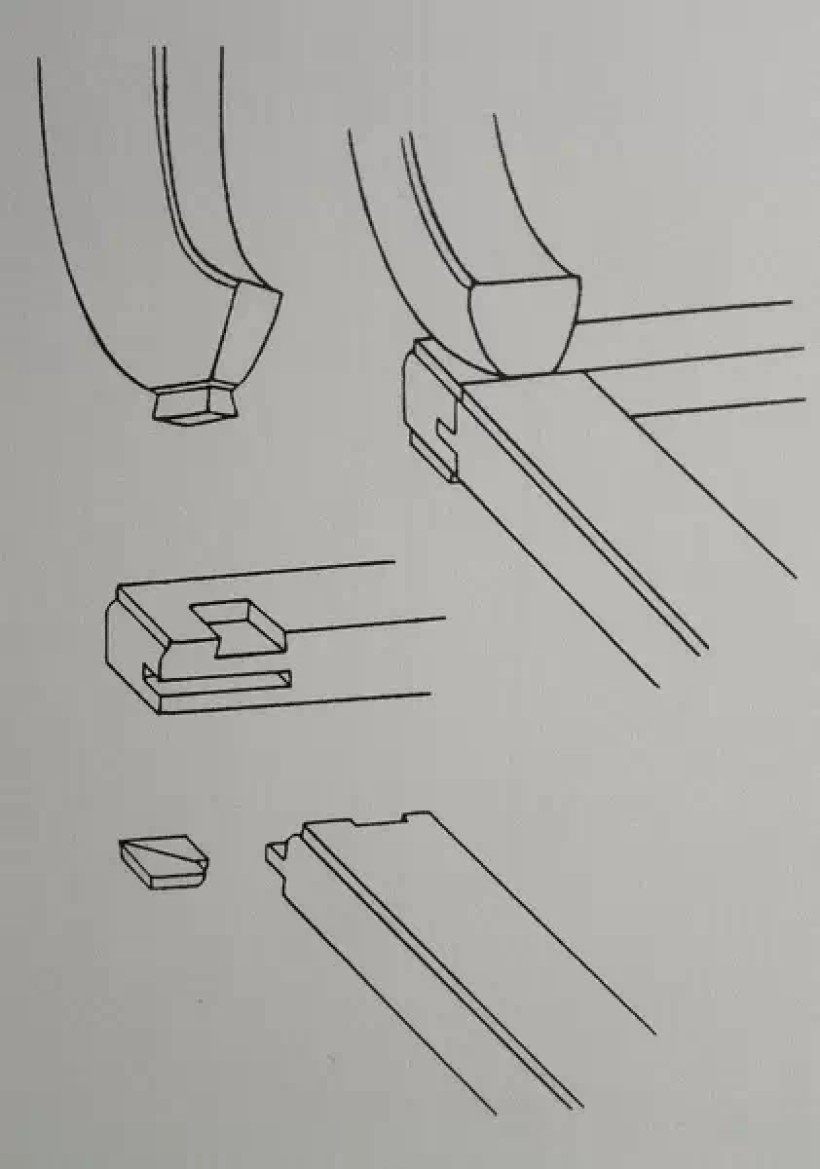 弧形弯材接合:楔钉榫之一