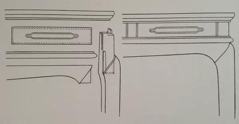 攒边打槽装板(面板装在翘头下,所示为大边与抹头正面的两个不同)