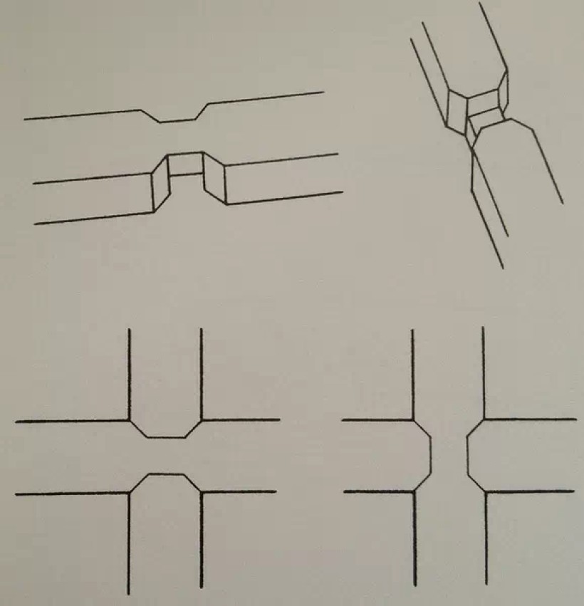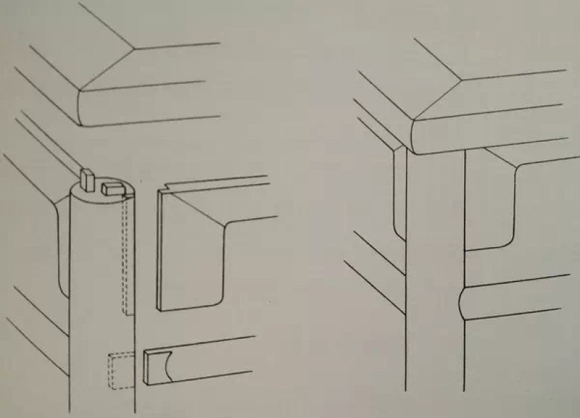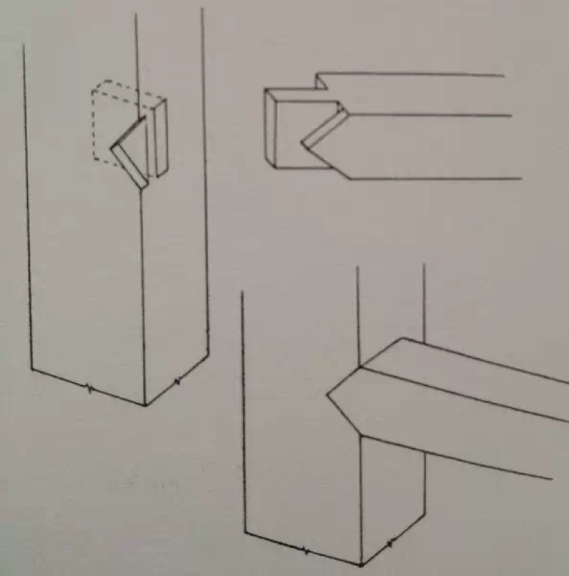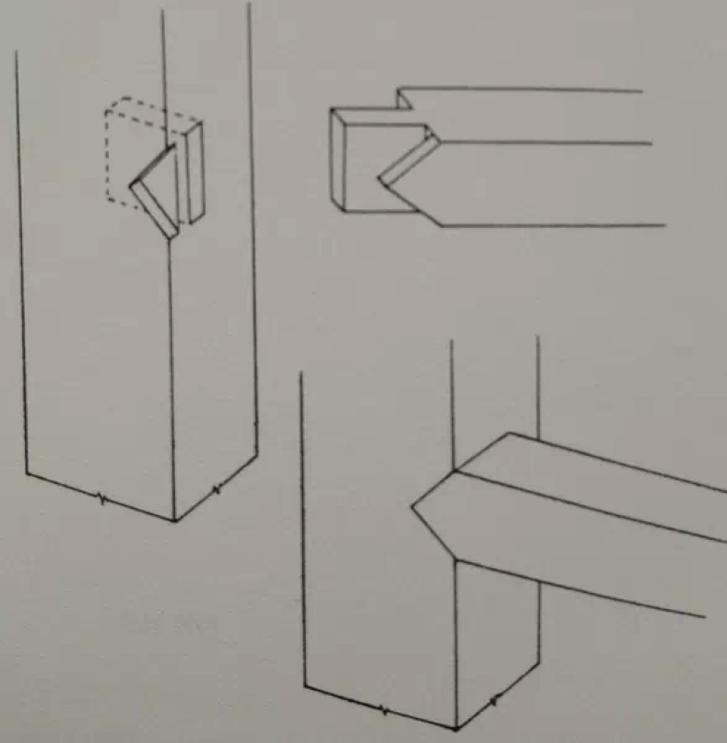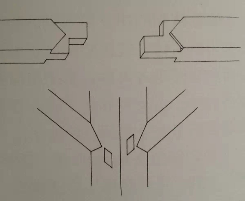 板条角接合:揣揣榫之一(正、背两格肩)