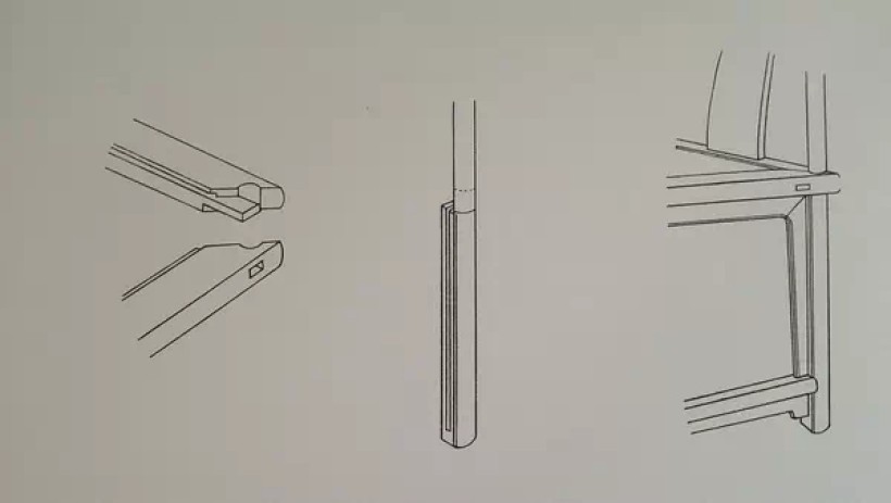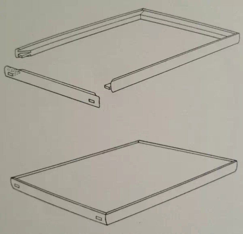 攒边打槽装板(面板装在翘头下,所示为大边与抹头的背面)