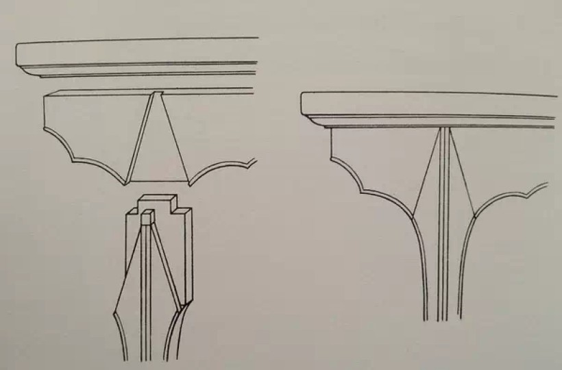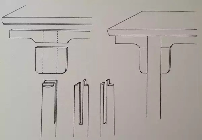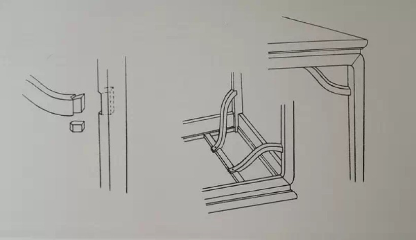 夹头榫结构(腿足上端开口嵌夹牙条与牙头)