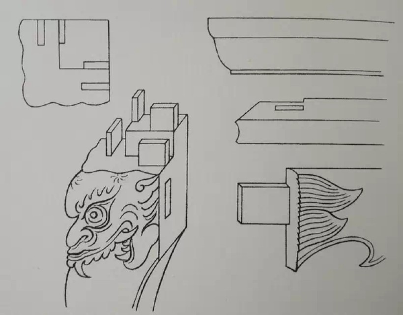 角牙一边留榫一边栽榫与横竖材的结合