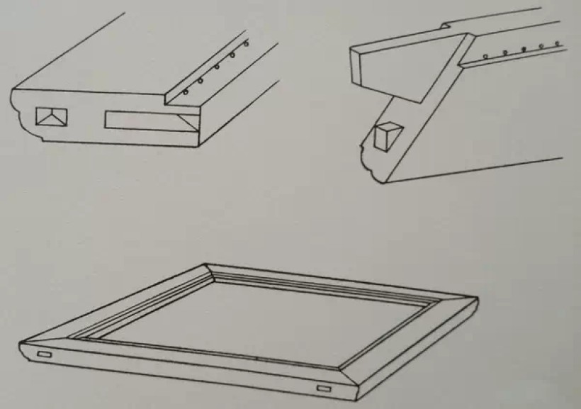 格角榫攒边之一(三角小榫用闷榫)