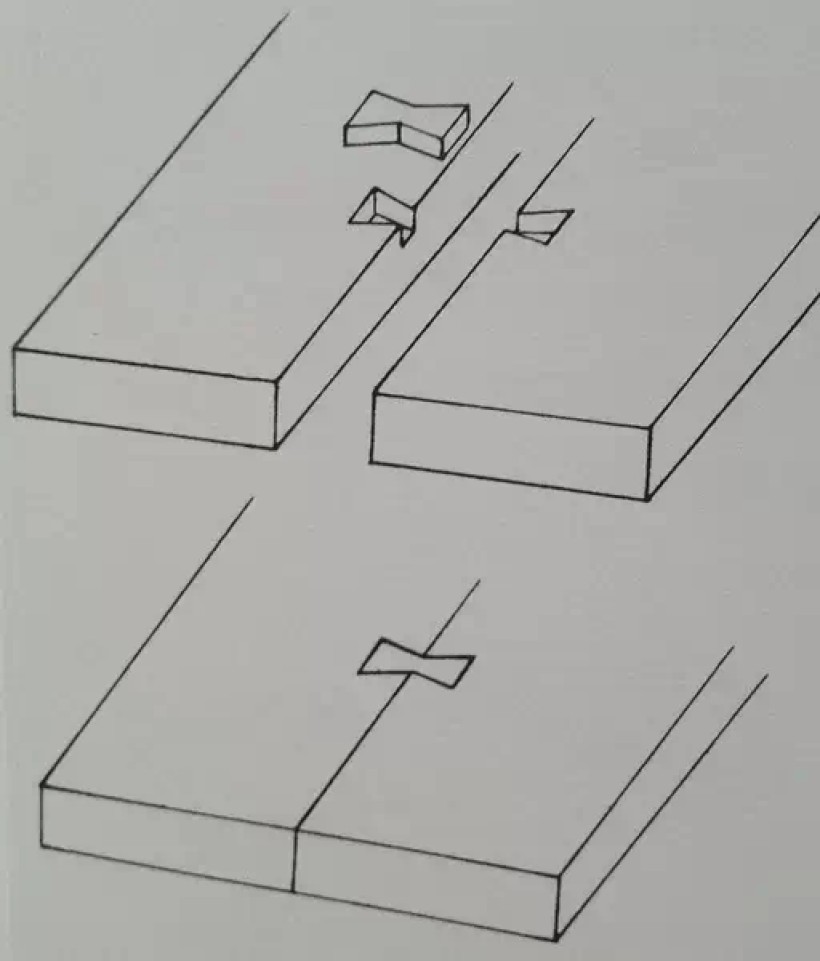 厚板嵌银锭榫(燕尾榫)拼合
