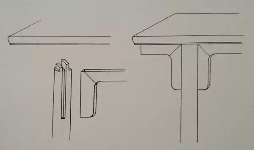 夹头榫结构(腿足上端打槽装牙条、牙头)