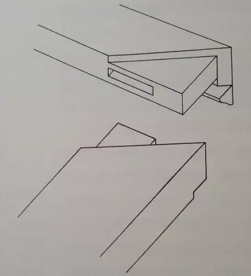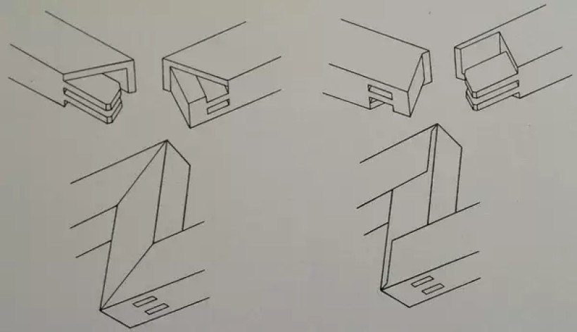 板条角接合:揣揣榫之二(正面格肩,背面不格肩)
